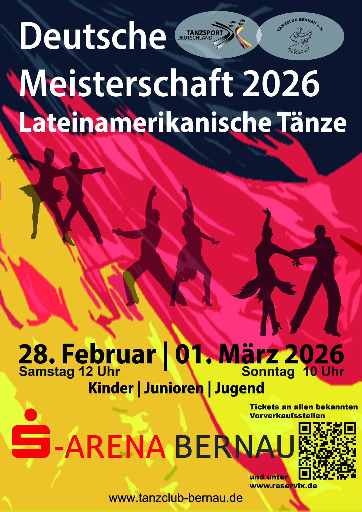 Deutsche Meisterschaften Lateintänze 2026 – Bernau bei Berlin 📅 28. Februar + 1. März 📍 S‑Bernau‑Arena, Bernau bei Berlin
